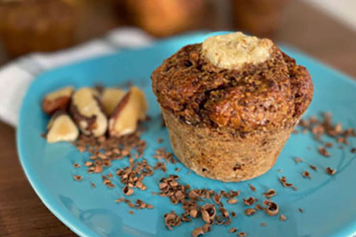 Muffin de Banana, Castanha e Chocolate 55% Cacau